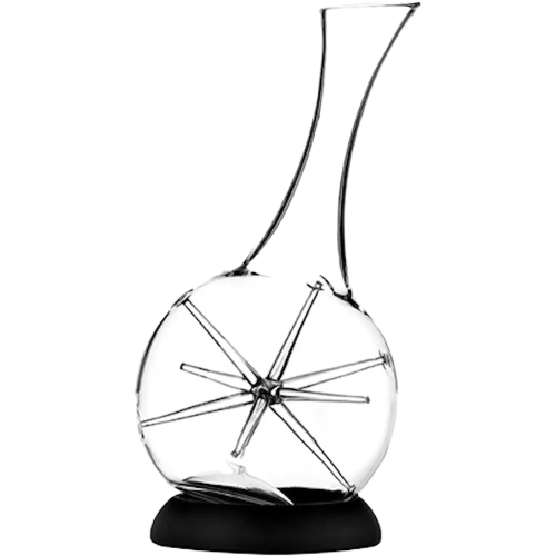 Et af de mest opsigtsvækkende designs indenfor vinkarafler, lavet i borosilikatglas, med en indvendig stjerne. Designet sikrer en optimal iltning, både ift. ilttilførslen og hastigheden, og ikke kun på overfladen, som er tilfældet for mange andre karafler. Karaflen er beregnet til iltning af maksimum 750 ml., svarende til en almindelig vinflaske. Da karaflen er mundblæst og fremstillet af blyfrit krystalglas, anbefaler vi at den vaskes i hånden.